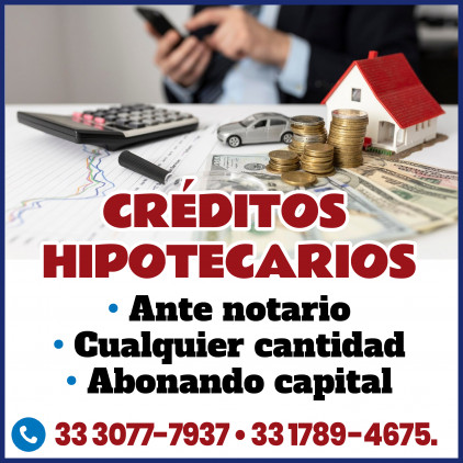 CRÉDITOS hipotecarios, bajos intereses, ante notario, automóviles, cualquier cantidad, gastos mínimos, abonando capital. 33 3077-7937, 33 1789-4675